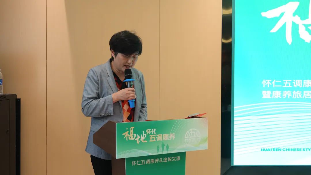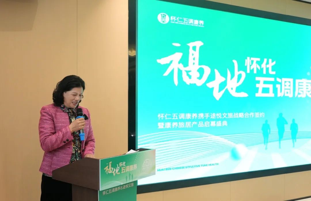 随后,肖莉杏发表了重要讲话,她说,怀仁康养旅居产品通过中医药文化、生态疗愈与旅居体验的深度融合,填补了湘西南高端康养市场的空白,为全域旅游产业链延伸开辟了新路径。她还强调,怀仁与途悦的合作不仅是资源与渠道的深度互补,更是品牌价值叠加的典范,双方将在康养资源整合、客群精准对接、品牌提升三大领域实现突破,为怀化打造"中国西南康养旅居目的地"提供有力支撑。对此,她提到了三点希望:①以生态为本打造低碳康养样本;②推动康养与多业态联动构建“全域、全季、全龄”旅居生态圈;③强化数字赋能实现智慧化服务升级,助力怀化康养品牌走向全国、迈向世界。