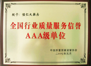 • 全国行业质量服务信誉AAA级单位