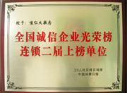 • 全国诚信企业光荣榜连锁二届上榜单位